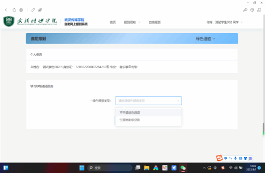 第一步:通过“新生自助网上报到系统”填写完相关信息后进入绿色通道页面,无助学贷款的学生选择“不申请绿色通道”,进入下一步。有助学贷款的学生选择“生源地助学贷款”,根据自己的申报类型、金额填写并上传证明材料。步骤见下列图示: