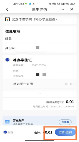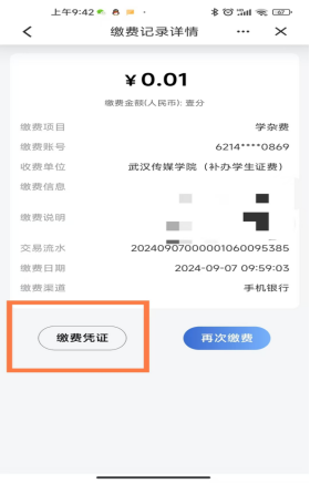 第九步:选择自己缴费的记录,点击“缴费凭证”