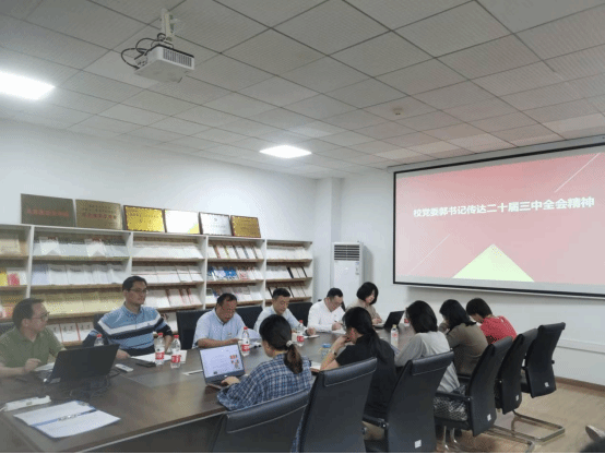 郭新力强调,要认真落实中央、省委和市委的安排部署,在校内扎实掀起学习宣传贯彻党的二十届三中全会精神的热潮。一是要在深入学习、深刻领会上下功夫。会后每位教师要认真研读党的二十届三中全会《决定》和习近平总书记在全会上的重要讲话,全面系统学,逐字逐句悟,领会精神实质,把握核心要义。二是要在联系实际、活学活用上下功夫。着眼学校当前中心任务,把全会精神学习同巩固主题教育成果、深化党纪学习教育、发挥每位教职员工的主人翁意识相结合,为学校的发展贡献自己的力量。