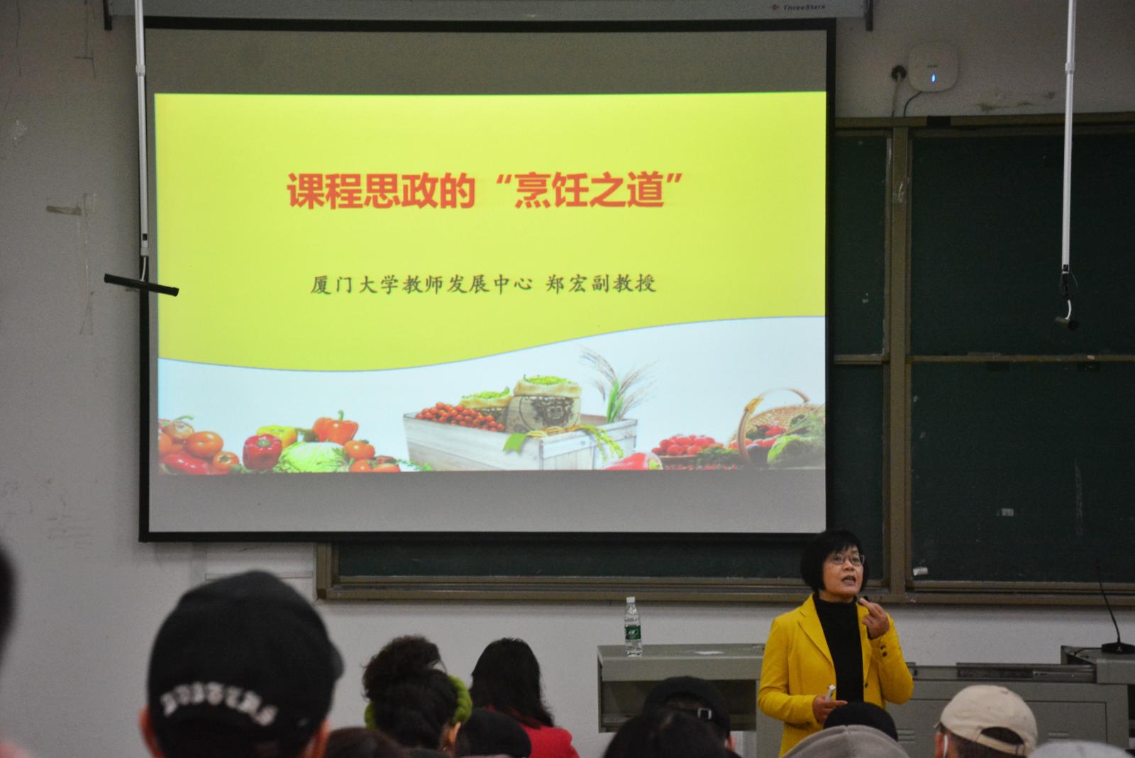 为发挥好专业课程价值引领的重任,进一步扎实推进我校“课程思政”建设,3月13日,校党委教师工作部(教师发展中心)邀请厦门大学教师发展中心咨询部主任郑宏副教授,在学校6106多媒体教室举办了《课程思政的“烹饪之道”》的主题培训工作坊,工作坊由校党委委员、校长助理姚晓菊主持,全校各学院教学管理干部及200多位专业课教师参加了培训。