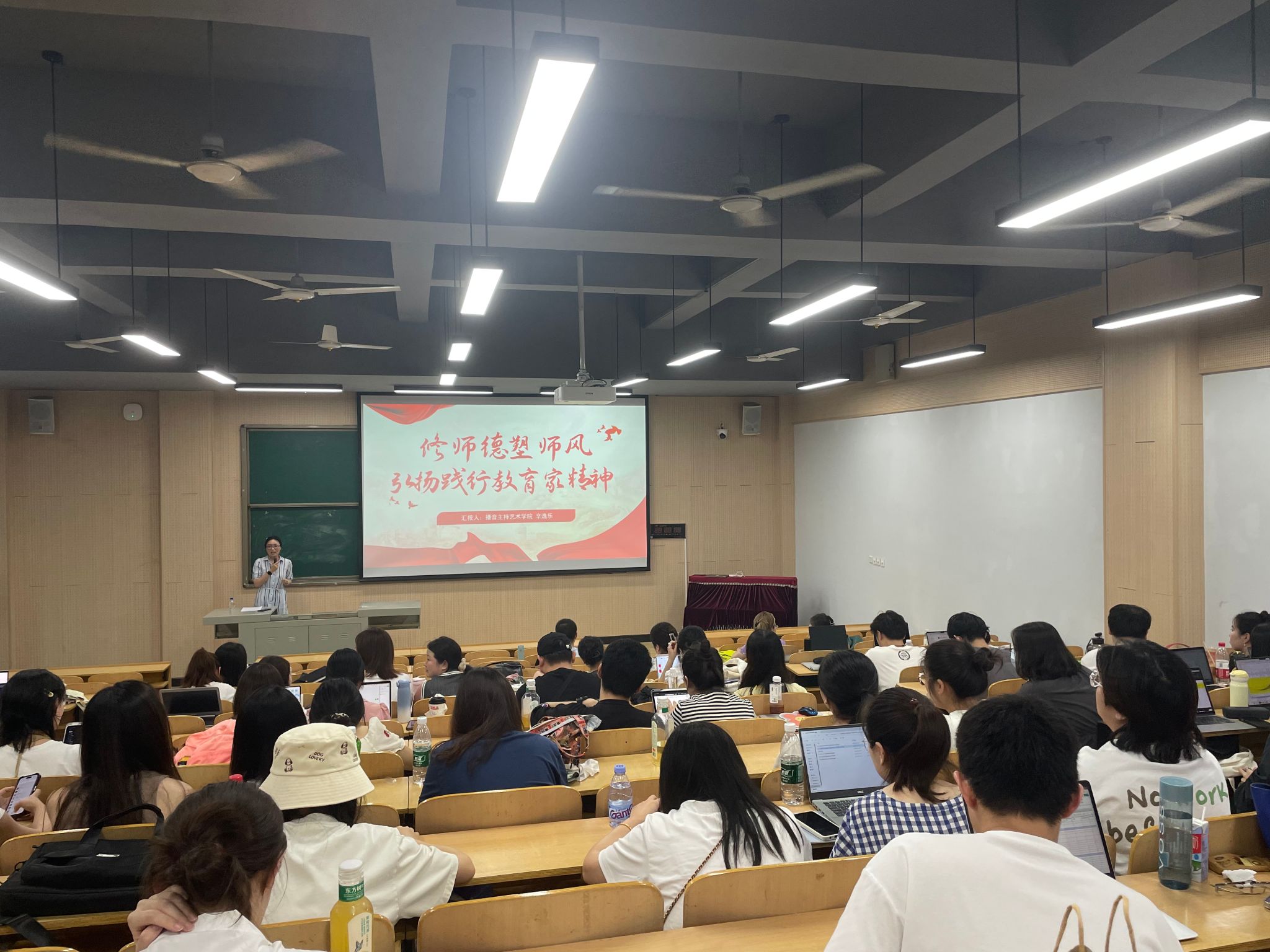 7月15日,教师发展中心邀请华中科技大学教育科学研究院院长助理刘长海开展《教育家精神与大学教师专业发展》主题讲座。全校136位教学院长、教学带头人、教研室主任、副高级以上职称老师参训。
