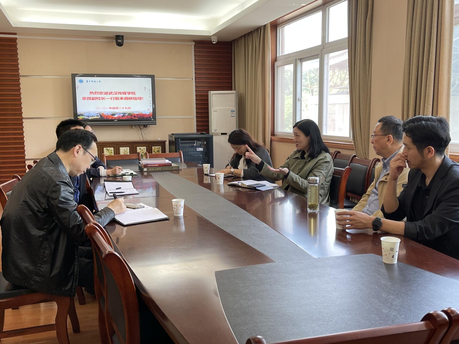 4月29日,我校常务副校长宗微带领校长助理、人事处处长兼党委教师工作部(教师发展中心)副主任姚晓菊、人文与艺术学院院长刘军平、音乐系系主任王皓和音乐创新教研室主任郑雅丽一行前往华中师范大学音乐学院进行了访问。