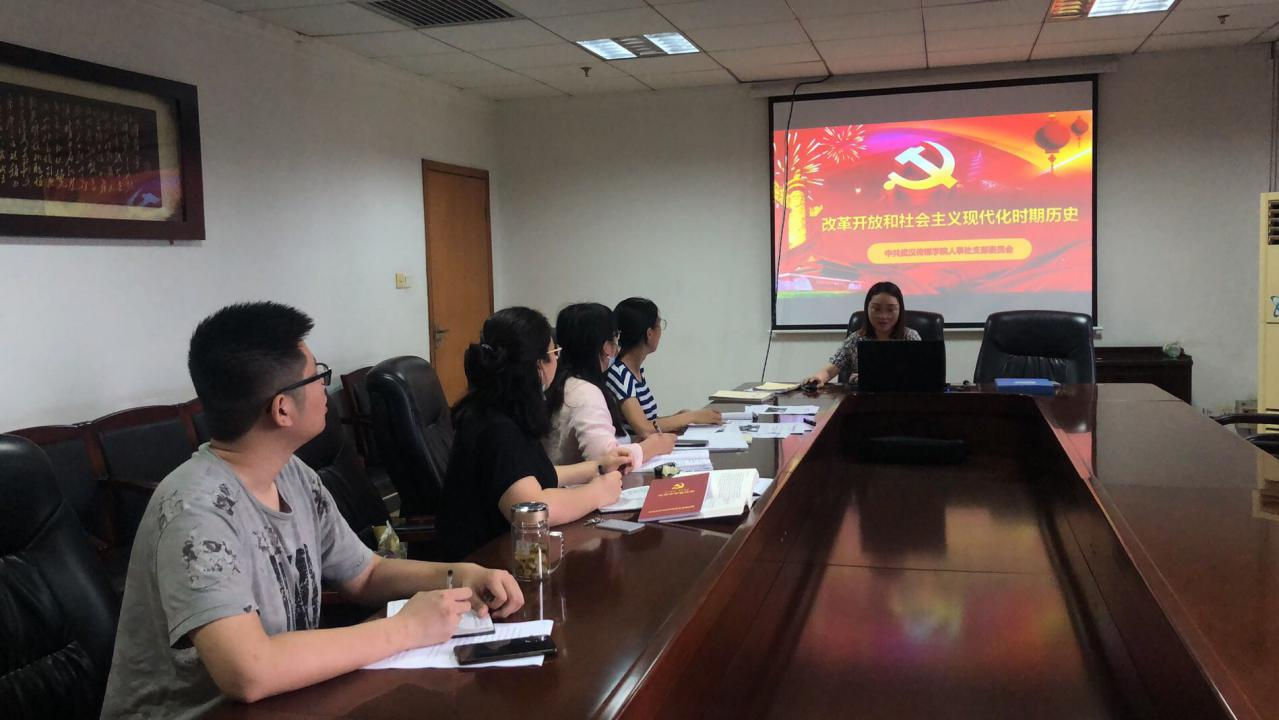 为进一步研读党史,将党史教育深入贯彻到工作中去,6月24日,人事处党支部在行政楼422会议室召开新民主主义革命时期历史专题学习会,全体党员共同学习观看了《党史故事100讲》之“科教春天,万众欢腾”、“五讲四美,精神文明”党史视频,学习了改革开放和社会主义现代化建设新时期从1978年党的十一届三中全会至今的历史。